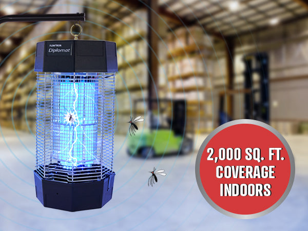 High-efficiency, electrified non-clogging 5600V grid instantly zaps and eliminates bugs.