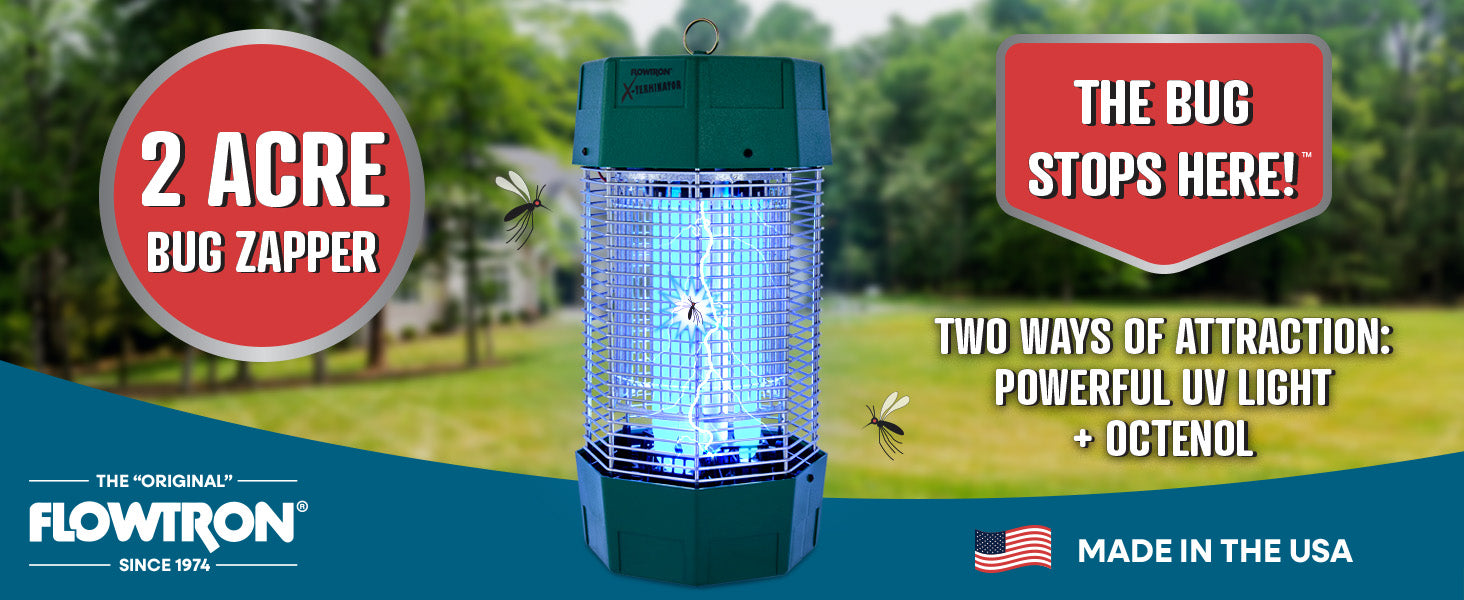 Say goodbye to pesky flies and biting mosquitoes with the Outdoor Electric Bug Zapper from Flowtron! This supercharged insect eliminating system puts a powerful dual-action spin on the typical bug zapping lantern with its 2-in-1 UV light and octenol attractant, anti-clogging grid, and high voltage transformer that outperforms virtually every competitor on today’s market. Instead of inviting flies inside to collect, crackle, and burn, the powerful 5,600-volt shocker kills them upon contact, sending remains to the ground to be absorbed by the earth. Three 40-watt ultraviolet bulbs easily attract biting nuisances from near and far; and with the octenol attractant cartridge, mosquitoes come flying from up to two acres away! This is because our design positions the octenol cartridge close to the UV lamp, allowing the liquid to heat up, vaporize, and—in combination with CO2—mimic the breath, body odor, and musk of cattle, deer, sheep, moose, goats, oxen, yak, and other ruminants, which mosquitoes favor. Despite the unit’s shocking efficiency, it still blends seamlessly with your outdoor decor, requires minimal maintenance, and has been rigorously tested and UL certified to withstand the elements for many years of reliable and affordable pest control. For best results, hang approximately 25 feet from your outdoor living space and away from other light sources. Once ideally positioned, plug in and prepare for a better backyard experience!