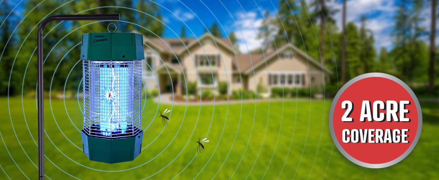 Ideal choice for clearing insects from your garden, backyard patio, picnic area, barnyard, and beyond – day and night.