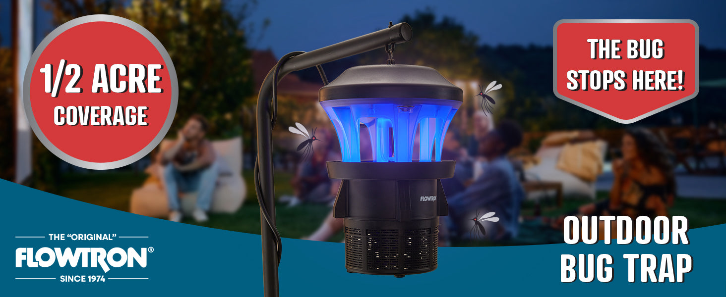 The Flowtron OFAN-30 Outdoor Bug Trap offers effective insect control for outdoor spaces up to 1/2 acre. Using a combination of UV light to attract insects and a powerful fan to capture them, this quiet bug trap provides protection without the noise of traditional electric zappers. The easy-to-clean collection chamber simplifies maintenance, while the weatherproof design ensures reliable performance throughout the season. Perfect for patios, decks, and outdoor entertainment areas. Enhance mosquito protection with optional Octenol attractant cartridges for optimal results.